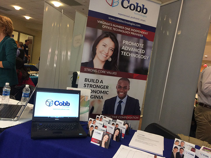 Cobb Technologies recruitment leave behind and banner (VCU Career Fair)